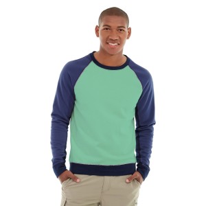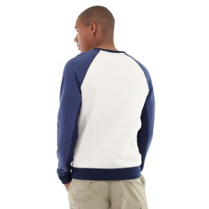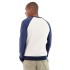• Cream crewneck sweatshirt with navy sleeves/trim.
