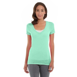 The Karissa V-Neck Tee features a semi-fitted shape that's flattering for every figure. You can hit the gym with confidence while it hugs curves and hides common "problem" areas.